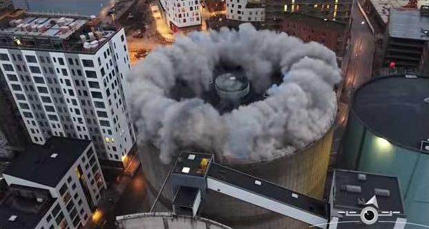 I don't fully understand our insatiable appetites of watching things explode or implode, but it's there. From firecrackers to nuclear tests, we love to watch some fireballs. That's what this video from Denmark does for us. This silo was undergoing a roof demolition and crews rigged the structure with explosives to bring the roof crashing down. The video is only 30 seconds long, but it's 30 satisfying seconds.