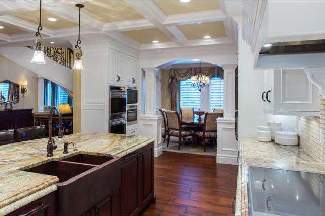 The wife wanted coffered ceilings, a beautiful staircase and a great kitchen.