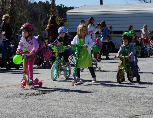 The day school held its annual parade in the church parking lot, where the 2-, 3- and 4-year-olds donned the most green they could find and rode their decorated bikes, trikes and scooters around for a cheering crowd of parents, grandparents and friends.