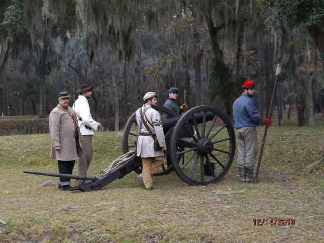 “You hear that sound?” asked Shirley Rowe, a Fort Mcallister park employee to a few strolling bystanders. “They’ll be firing back and forth like that all day. This side will fire one, and then in a few minutes, the other side will fire back. “