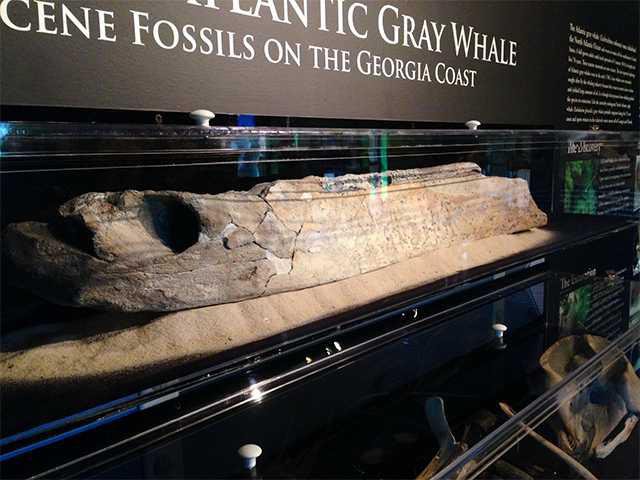 The fossilized remains of an extinct Atlantic gray whale are the focal point of a new exhibit at the University of Georgia Aquarium on Skidaway Island.
