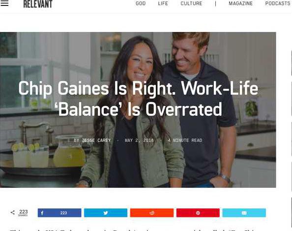 According to Carey, Relevant interviewed Chip last year about how the Fixer Upper star has a work-life balance while also leading a highly religious life.