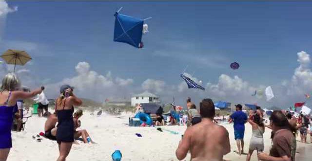 Up in the air goes all our gear, ruining our perfect set up. But we realize its OK, because we got a free show.