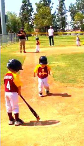 Though the coach is clearly frustrated, the kid just shrugs off his attempts to get him to hurry things along. And I can't blame the kid. He definitely knows how to get a crowd cheering for him. By the time he finally makes it to home plate, the crowd is laughing and clapping. And no doubt this was the most memorable part of the game.