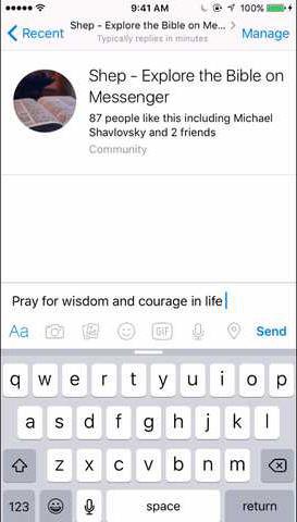 So Yankoff created Shep, a Facebook Messenger chat bot designed to manage prayer requests within Facebooks messenger app. Users send Shep a message and enter commands to make prayer requests, see other requests and respond to them with messages and notifications that theyve been prayed for. The requests are semi-anonymous, using the users first name and last initial, along with their profile photo and can be as detailed or as simple as the user likes.