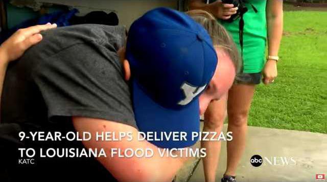 Carson Boutte helped deliver 363 pizzas to Louisiana flood victims as his birthday present. His aunt, whose house had flooded, motivated the generous act.