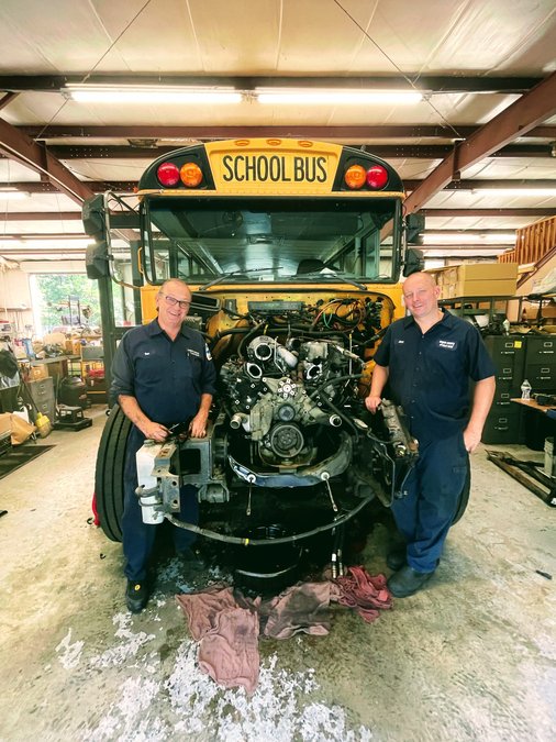 Bellamare said this year’s photo, titled “A Clockwork Yellow,” is dedicated to mechanics Ron Farnsworth and Jerry Mitchell, shown in the above photo at the Richmond Hill bus barn.