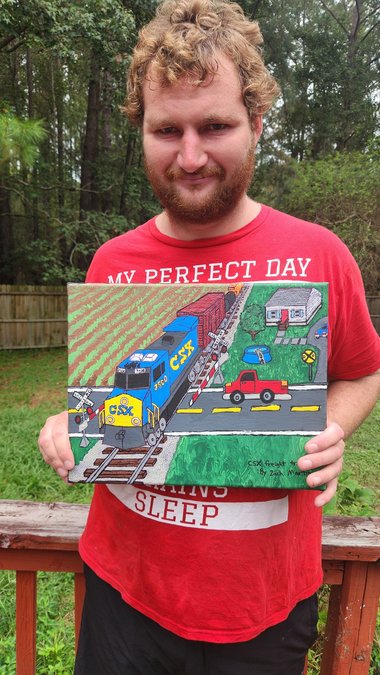 "I'm Zach, I'm 26 years old and on the autism spectrum. My art is my superpower, and my goal is to make my art my dream job,” he said. “I create things from my imagination and from my memories and put them together. A lot of my art focuses on nature and trains, which are some of my most favorite things."