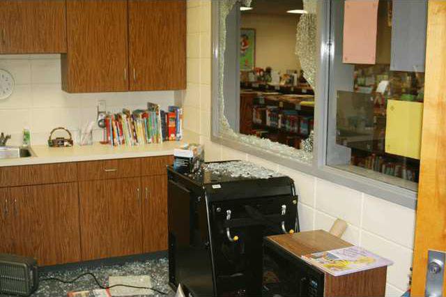 On Dec. 14, someone broke into the school, damaged property and spray painted the walls with profanity.