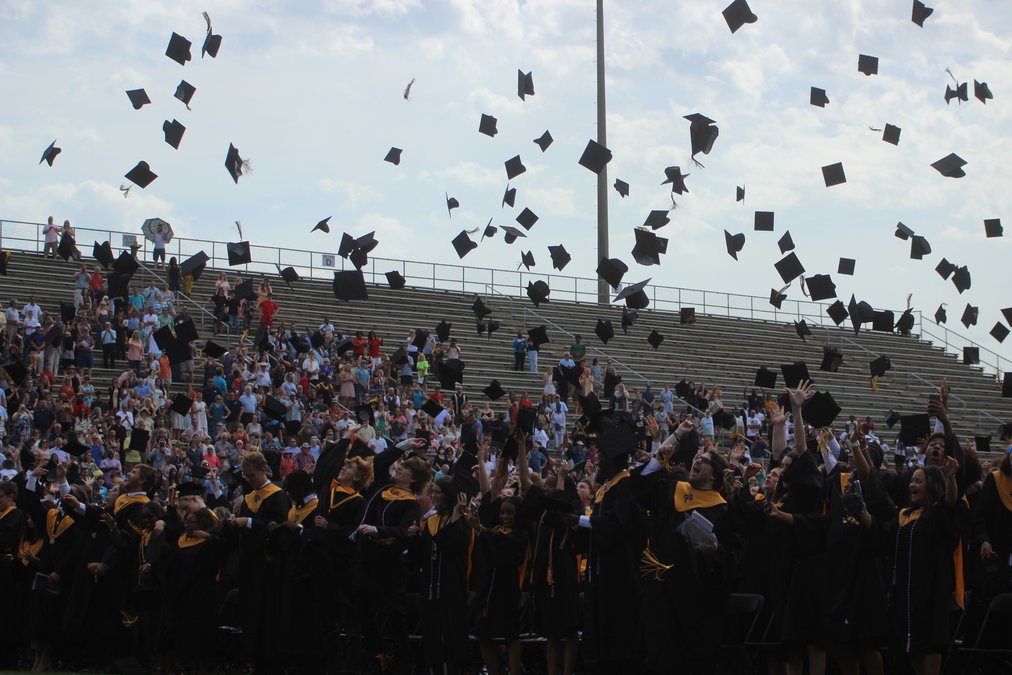 In all, 572 seniors, including 109 honor graduates, received their diplomas during the commencement exercise Glynn County Stadium on a warm, humid morning in which the rain held off until the parking lot had started to clear.