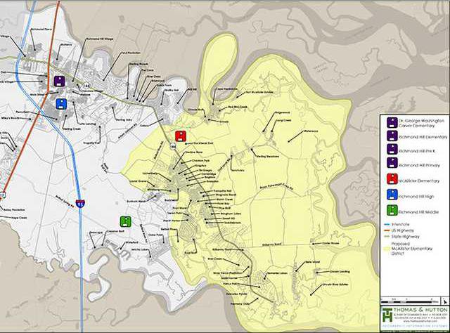 Bryan County Schools has published the proposed attendance area for McAllister Elementary School on the school district website. The proposed attendance lines for McAllister Elementary School are based on many different factors collected during the first community forum. One of the primary factors influencing the proposed attendance area was the projected student growth in South Bryan County at the elementary level. Dr. Paul Brooksher, Superintendent, states “It is essential that we look at future growth for McAllister Elementary School and our existing elementary schools to help ensure that we keep pace with current and future residential developments. We hope to avoid a situation where we open a brand new school and we are over capacity in one or two years.”