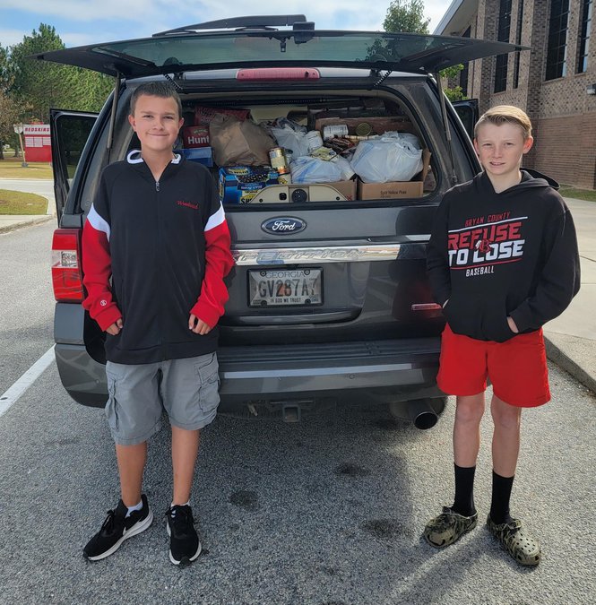 Along with a turkey, the meal boxes include stuffing, macaroni and cheese, pasta, sweet potatoes, cranberry sauce, green beans, carrots, mashed potatoes, rice, and canned fruit. Some of the items in the meal boxes are from a recent food drive that was organized by the Bryan County Middle School Student Council.