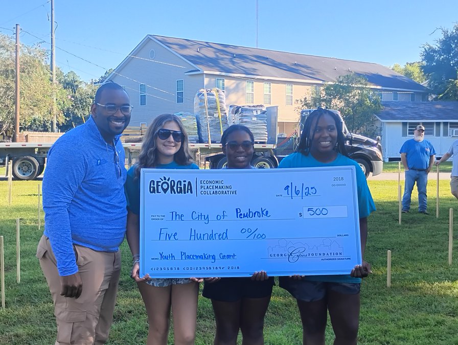 Tavari Turner, Project Manager of GeorgiaForward, presented the girls with a grant for $500 towards the project.