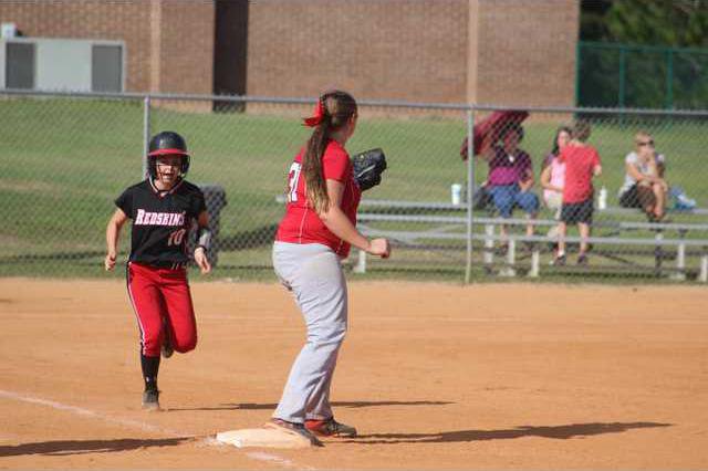 The Redskins batted around in the bottom of the fourth inning, scoring six times to take an 8-2 lead. Consecutive walks to Shelby Gunn and Kelsey Leggett, followed by a single from Briana Campbell loaded the bases. Gunn scored on a wild pitch, followed by Leggett scoring on a fielder’s choice by Hannah Dickerson. An infield hit by Kourtney Marsh scored Campbell, followed by a walk to Alyssa Edwards. Brooklyn Hewitt loaded the bases as she laid down a perfect bunt that died on the third-base foul line as three Bulldogs stood over the ball.