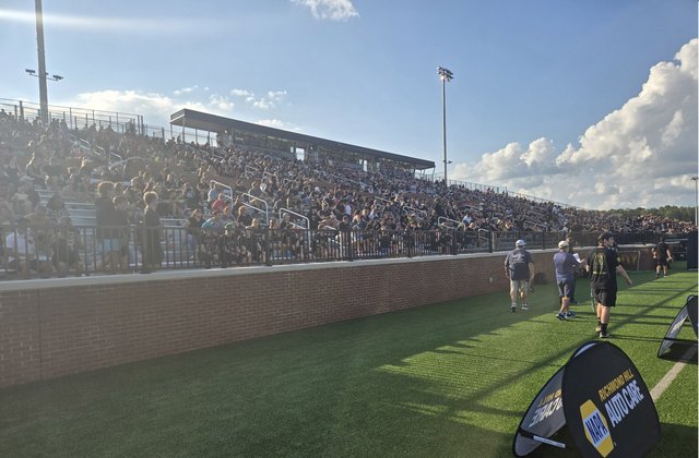 The game was twice delayed from its original Friday night start time due to weather and with a 6 p.m. kickoff there were many commuters still on the highway on their way home from work. Yet, the home side stands were nearly full in the 10,000-seat stadium which one observer dubbed “The Palace”.